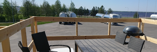 - Kesäksi kuljettajille aurinkoterassi, jossa voi grillata ja rentoutua.
